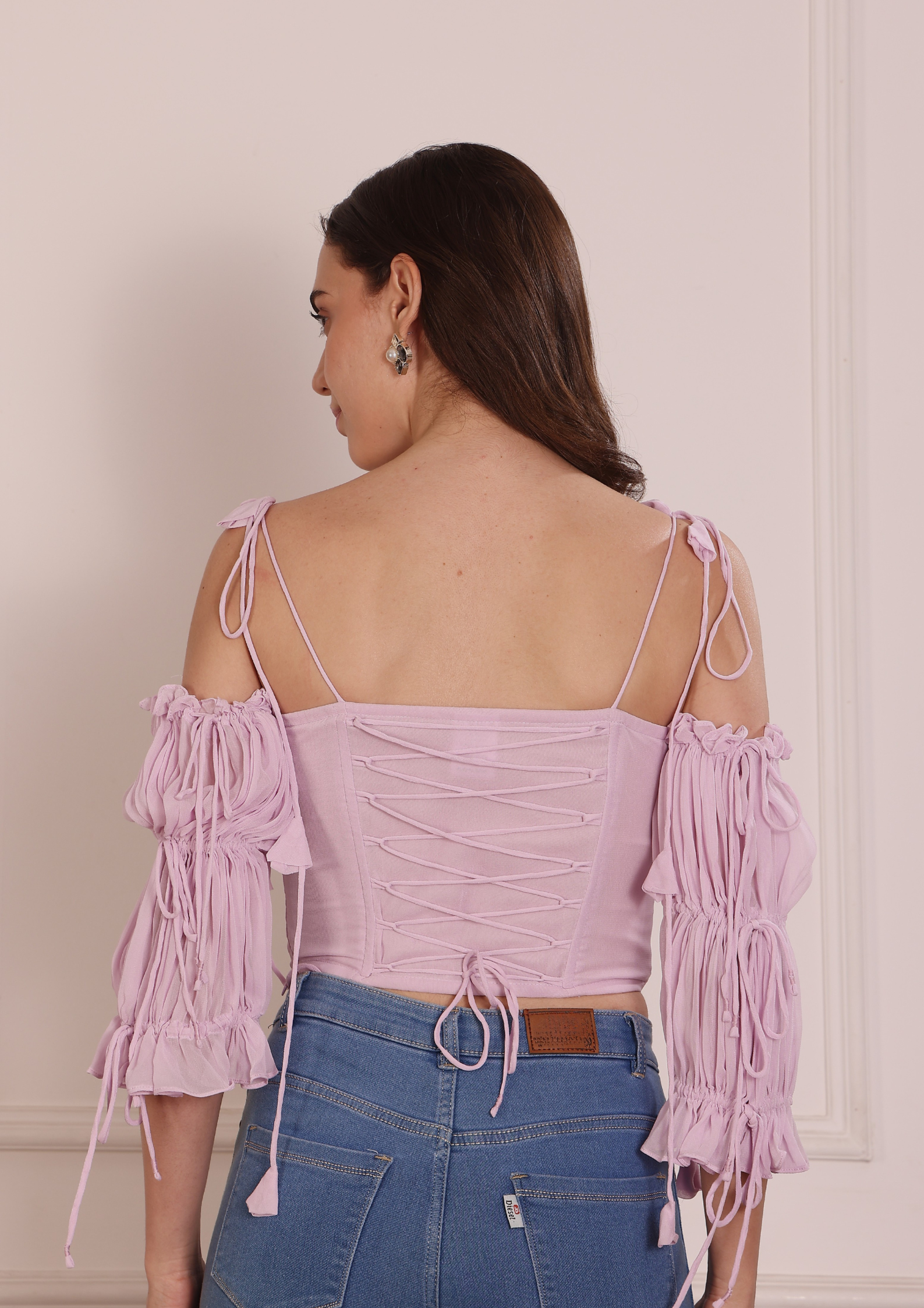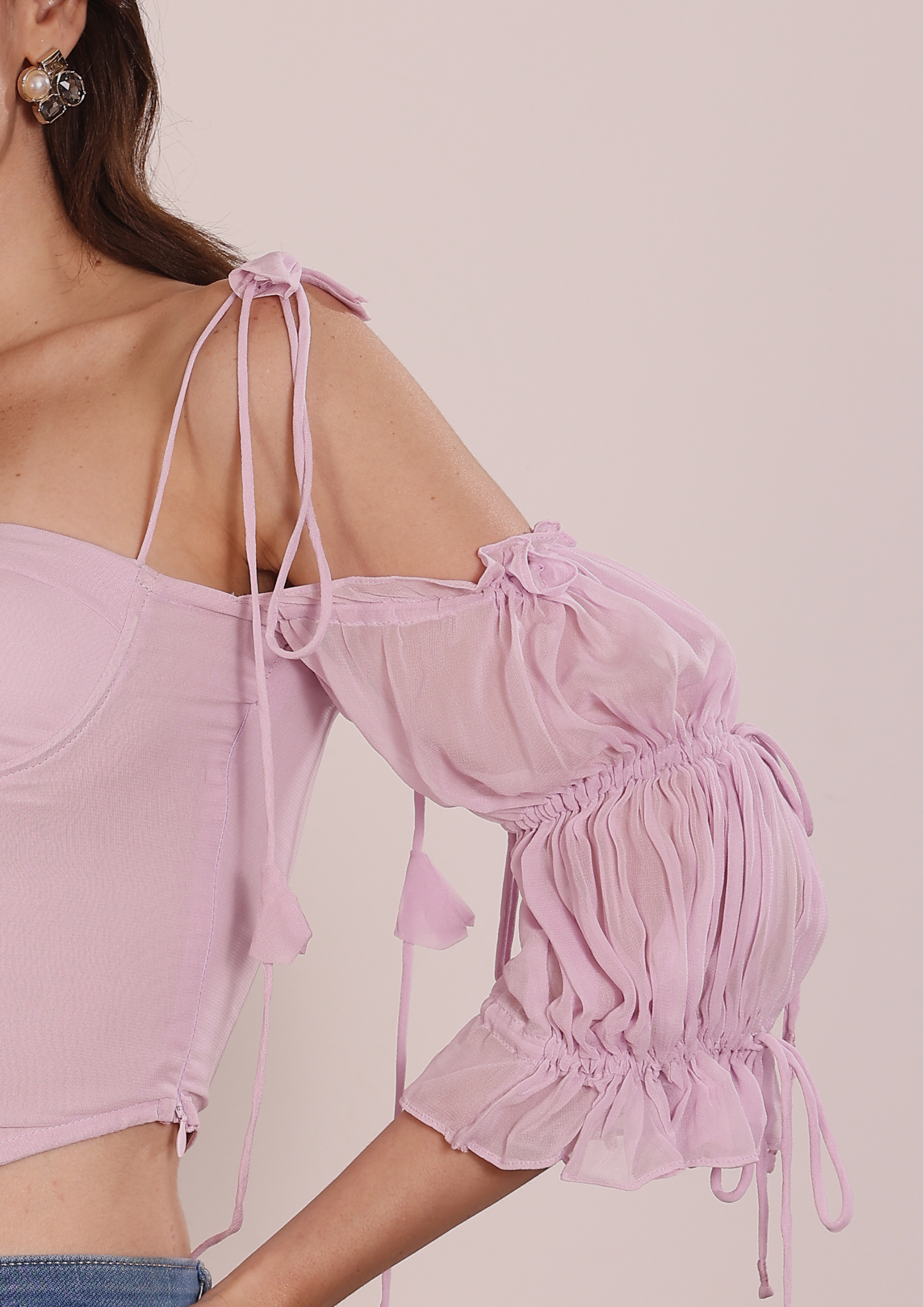 Dressed in a soft lavender hue, the Lavie top feels calm, romantic, and effortlessly refined. The gentle pastel tone highlights the structured bustier details while allowing the fabric to fall with airy grace. Subtle yet striking, lavender brings a fresh, feminine charm to the piece perfect for daytime styling or elevated evening looks.